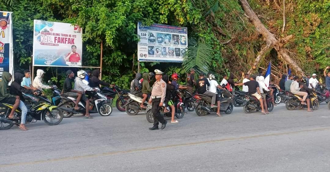 aceh.tagarutama.com, Fakfak – Puluhan pendukung Les Blues pawai keliling mengitari jalan jalan utama kota Fakfak merayakan kemenangan Timnas Prancis atas Timnas Inggris di babak perempat final piala dunia Qatar 2022 yang berlangsung di Al Bayt Stadium, Al Khor, Minggu (11/12/2022) dini hari WIT. Para Pendukung Timnas Prancis melakukan konfoi kendaraan membunyikan klakson sambil bernyanyi dan melambai-lambaikan bendera.