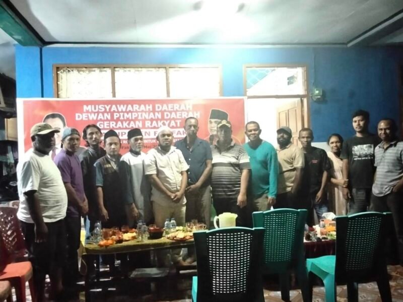 aceh.tagarutama.com, Fakfak — Musyawarah Daerah (Musda) I Dewan Pimpinan Daerah (DPD) Gerakan Rakyat Kabupaten Fakfak resmi digelar pada Rabu, 30 April 2025. Musda perdana ini dilangsungkan di kediaman tokoh masyarakat Fakfak, Abdul Rahman Nanat, dan menjadi tonggak awal pembentukan struktur organisasi Gerakan Rakyat di Kabupaten Fakfak.